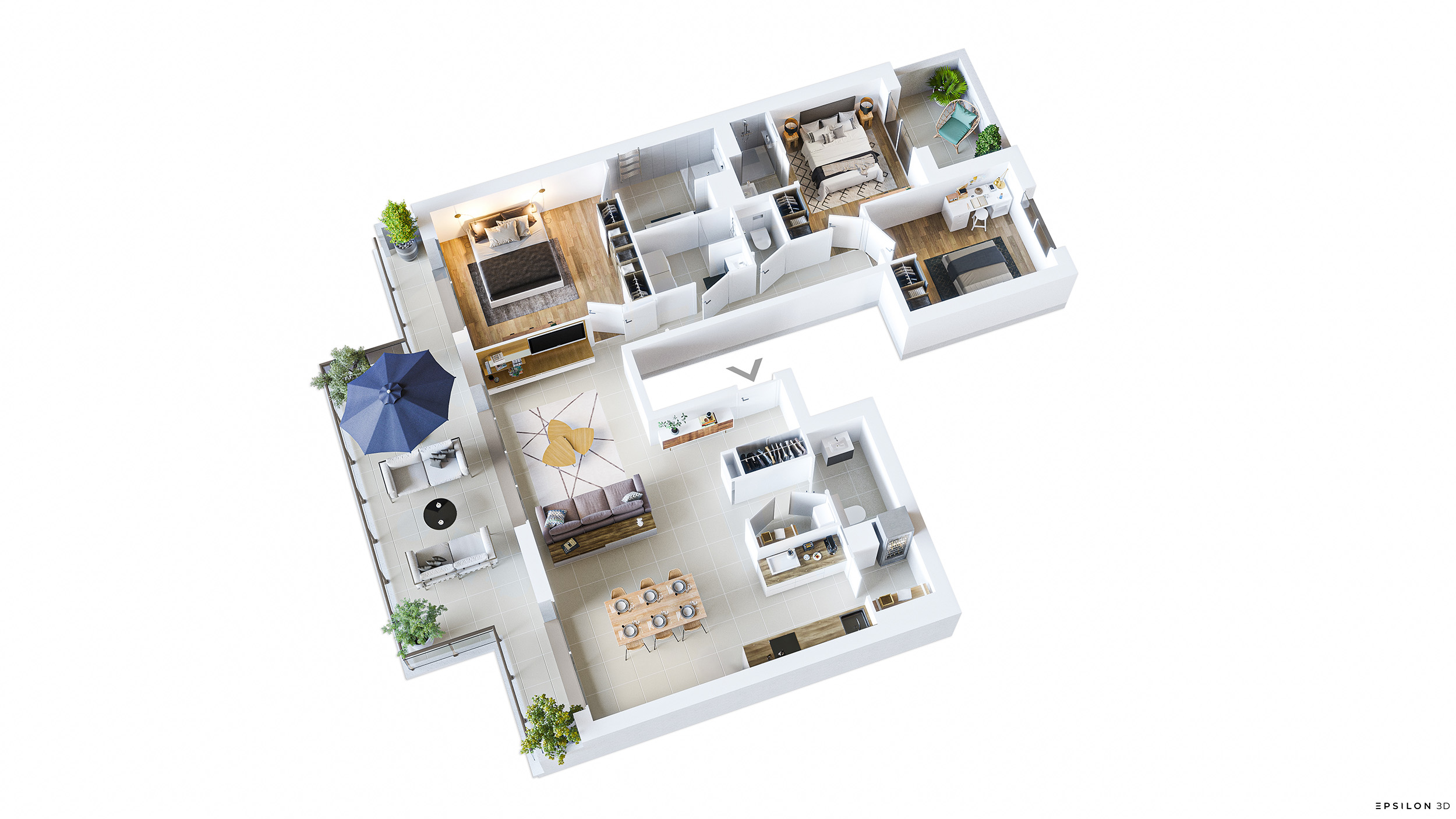 Les espaces extérieurs seront paysagés et chaque logement s’ouvre sur une terrasse généreuse, conçue pour prolonger l’espace de vie et offrir un cadre idéal à la détente comme aux instants partagés.